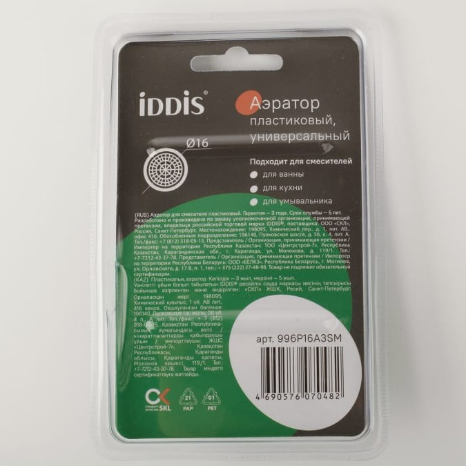 - Аэратор для смесителя Iddis Optima Home 996P16A3SM 16 мм