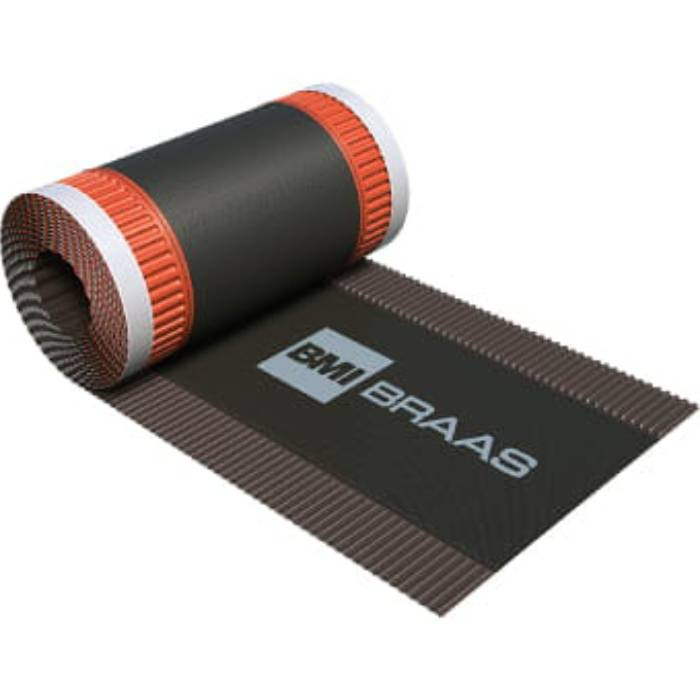Аэроэлемент конька и хребта Braas 676/39508CH красный 5000х310 мм - рулонный материал с центральной воздухопроницаемой мембраной, самоклеящимися полосами и защитной антиадгезионной пленкой. Изготавливается из алюминия, полипропилена и бутилкаучука. Устанавливается под коньковую черепицу. Крепится скобами степлера к коньковому или хребтовому бруску и приклеивается к кровельному покрытию. Защитная антиадгезионная пленка удаляется в процессе монтажа.
