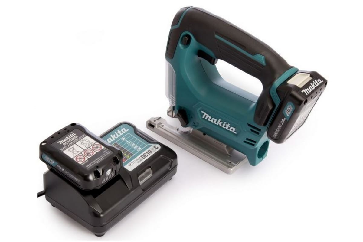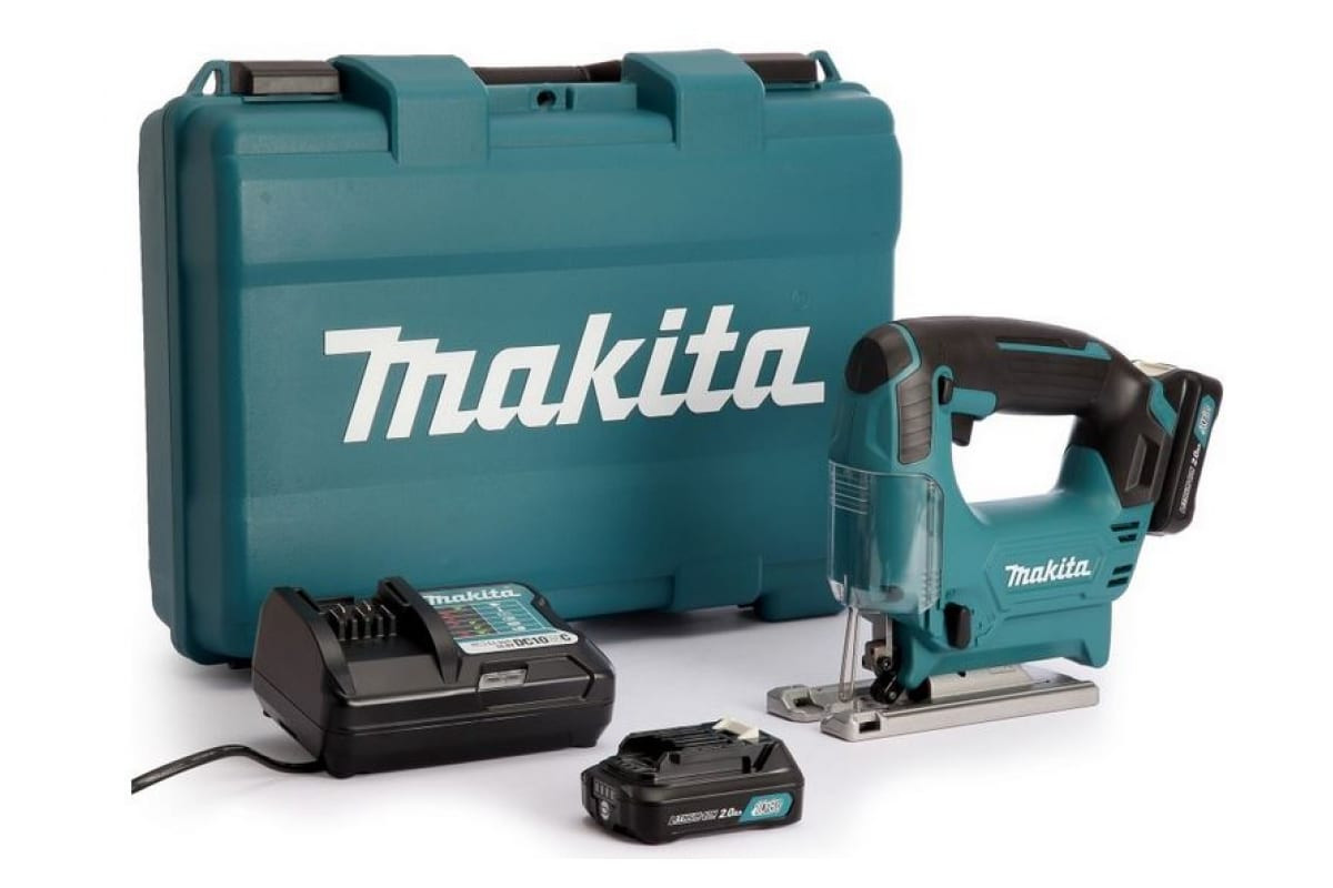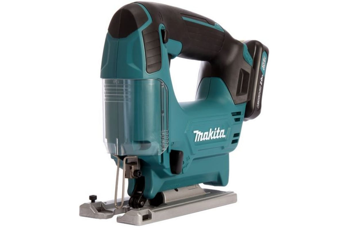 Лобзик Makita JV101DWAE снабжен мощным двигателем, что обеспечивает высокую производительность. 4 ступени маятникового хода помогают подстраиваться под конкретный тип материала. Наличие специального экрана защищает лицо оператора от вылетающей стружки. К инструменту можно при желании подключить пылесос, благодаря чему рабочее место останется чистым. Два аккумулятора позволяют длительное время работать в условиях отсутствия электросети.