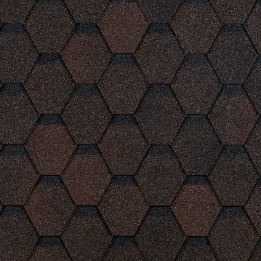 Черепица гибкая Docke PIE Eurasia Шестигранник Коричневый предназначена для устройства кровельного покрытия скатных крыш зданий и сооружений с уклоном от 12 до 90 градусов.