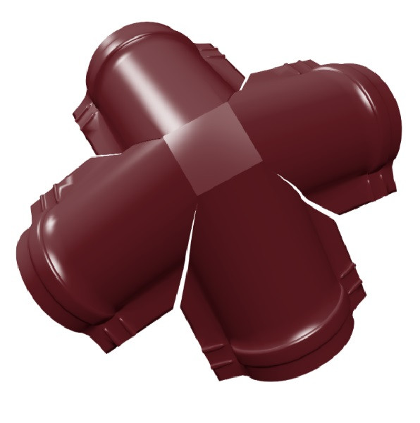 Четверник для полукруглого конька Grand Line Satin Matt Ral 3005 применяются в качестве соединения полукруглых коньков на шатровых кровлях. служит для обеспечения герметичности стыковки кровельных доборов. Имеет узкую специализацию применения на четырехскатной кровле с малым полукруглым коньком.