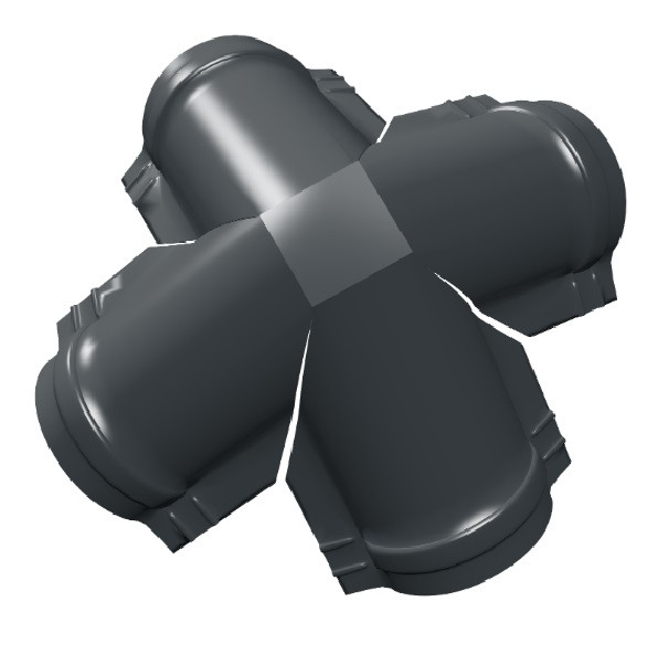 Четверник для полукруглого конька Grand Line Satin Ral 7016 применяются в качестве соединения полукруглых коньков на шатровых кровлях. служит для обеспечения герметичности стыковки кровельных доборов. Имеет узкую специализацию применения на четырехскатной кровле с малым полукруглым коньком.