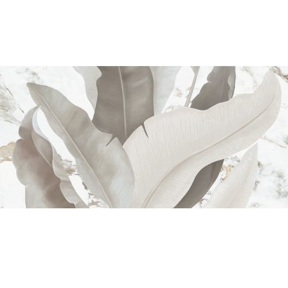 Декор из керамогранита Lasselsberger Янссон 2 - это прочный, стильный и практичный материал, который сделает ваш дом или коммерческое помещение уютным и функциональным. Рисунок листьев кустарника на белом мраморном фоне. Декор можно использовать как элемент для создания вертикального панно.