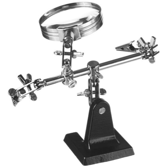 Держатель для припоя Stayer Master 55339 c увеличительной линзой служит главным образом при проведении паяльно-сборочных работ в электронике, ювелирном деле, сборке и ремонте для зажима мелких деталей в любом нужном положении, когда не хватает двух рук. Данный инструмент необходим не только любому специалисту для выполнения работ с высокой точностью и безопасностью для клиента, но также будет незаменим в быту.