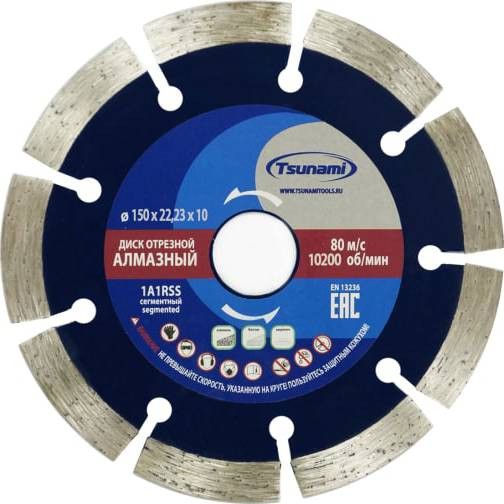 - Диск алмазный сегментный Tsunami 150х22,23х10 мм