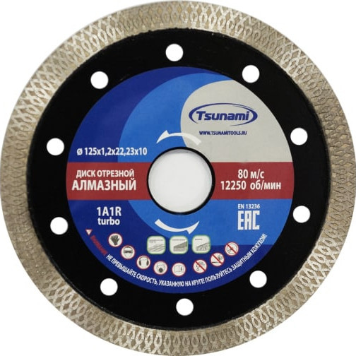 Диск алмазный Tsunami Turbo тонкий горячего прессования 125x1,2x22,23x10 мм