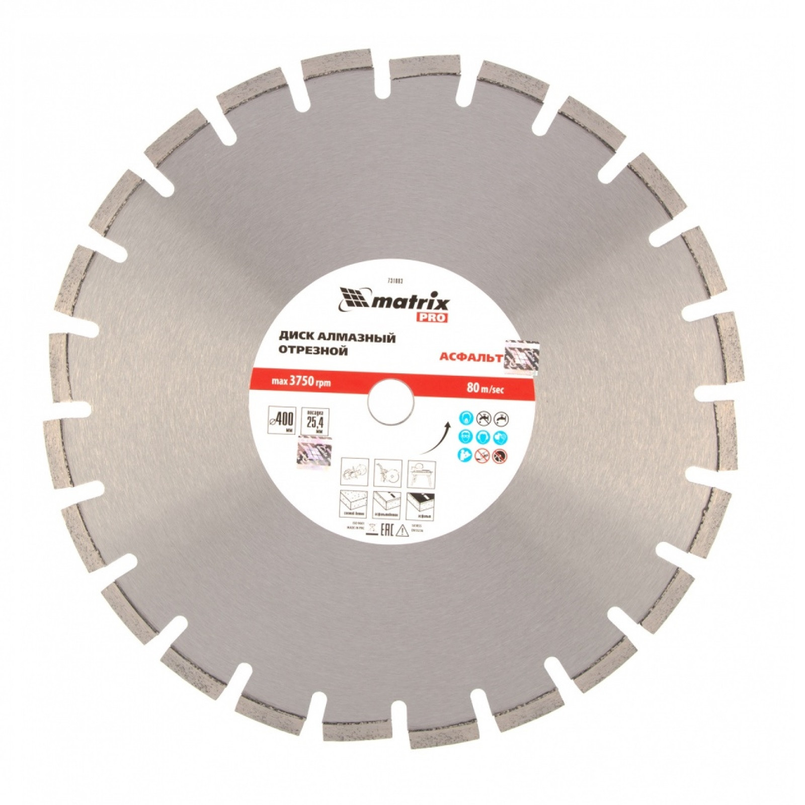 Диск алмазный Matrix Pro 731083 применяется для резки асфальта, асфальтобетона, свежего бетона и др. материалов. Допускается применять для резки песчаника абразивного и силикатного кирпича.
