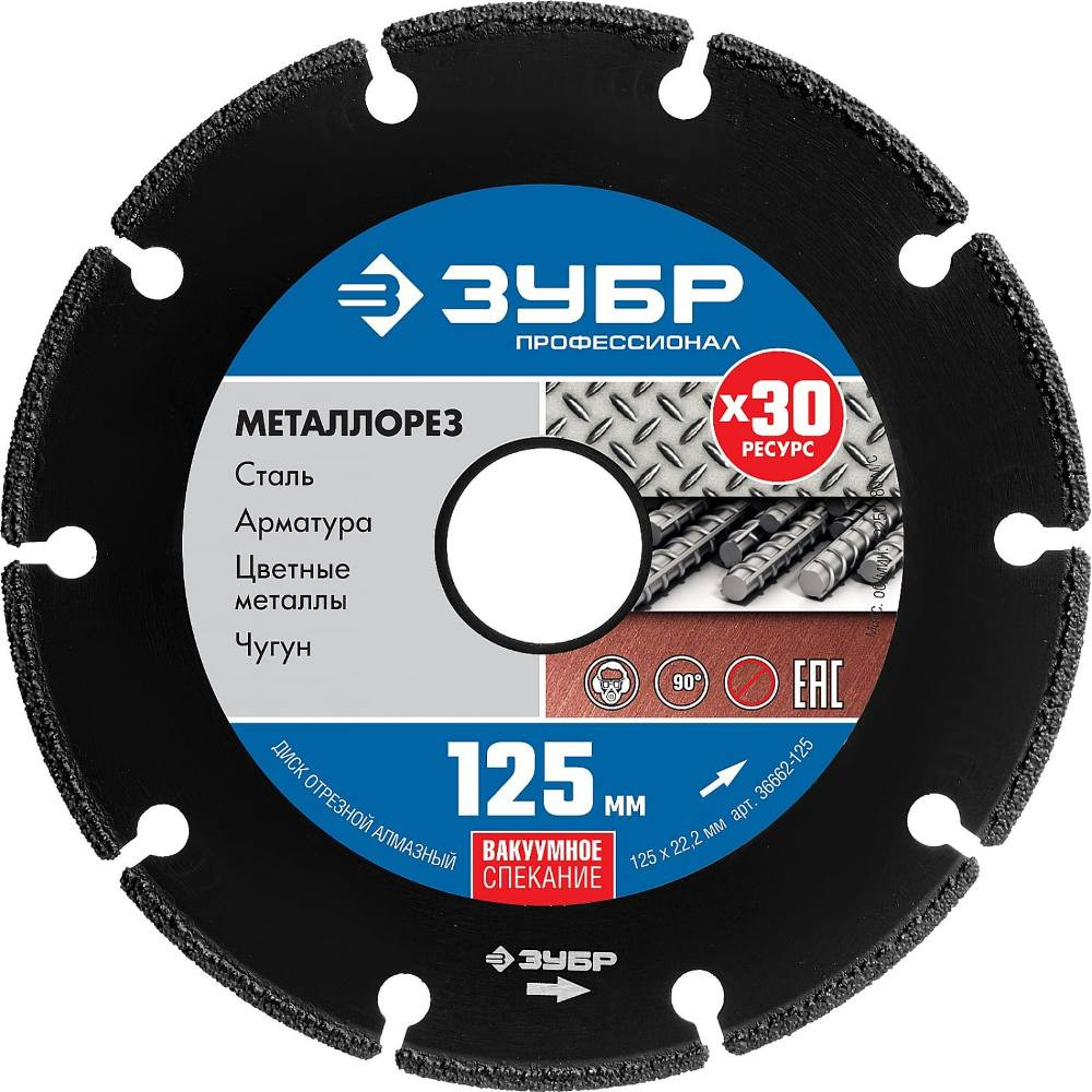 - Диск алмазный отрезной Зубр Профессионал Металлорез 36662-125 125 мм по металлу