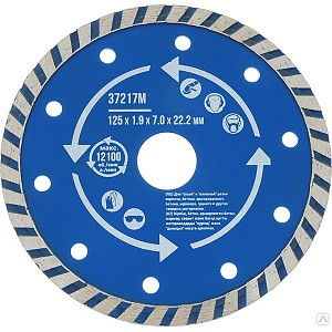 - Диск отрезной, 125х1,9х22мм, алмазный, турбо, универсал, для сухого и мокрого реза, "MOS" /37217М
