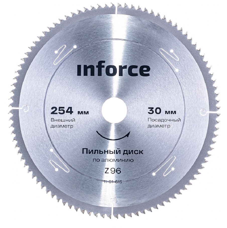Диск пильный по алюминию Inforce 11-01-615 96Т 254х30 мм предназначен для работы по алюминию.