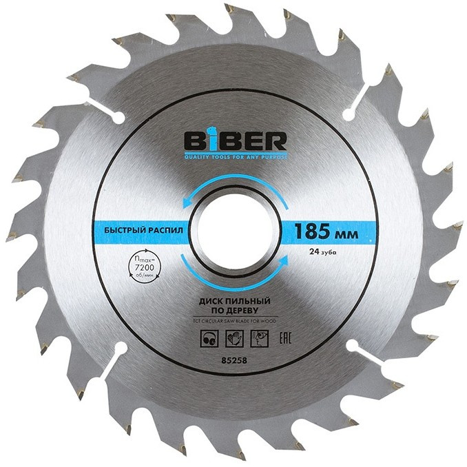 - Диск пильный по дереву Biber 85258 185х30 мм 24 зуба