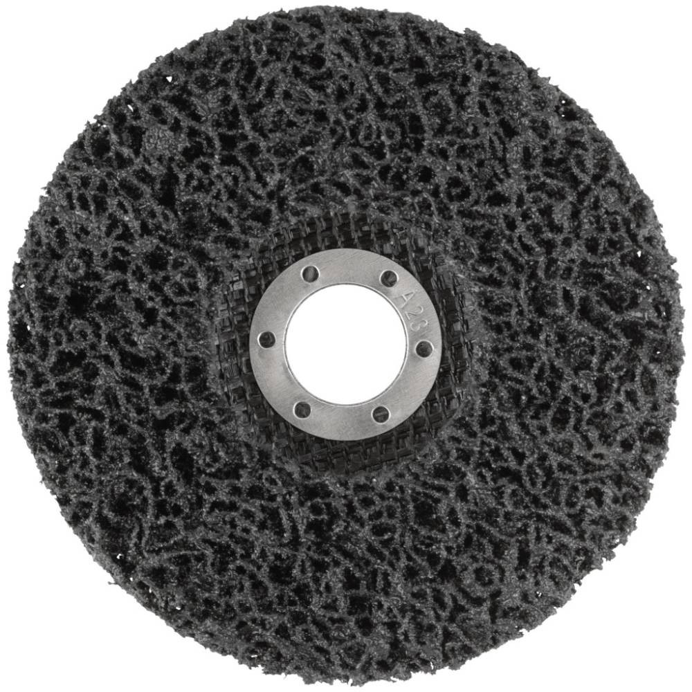 Грубой зернистости, отличается высокой износоустойчивостью. Для очистки металлических поверхностей. Для углошлифовальных машин. Посадочный диаметр 22,2 мм. Благодаря специальной структуре не загрязняется и меньше нагревается в процессе работы по сравнению с традиционными абразивными материалами. Материал: инструментальная сталь, нейлоновые волокна с абразивным слоем из карбида кремния.