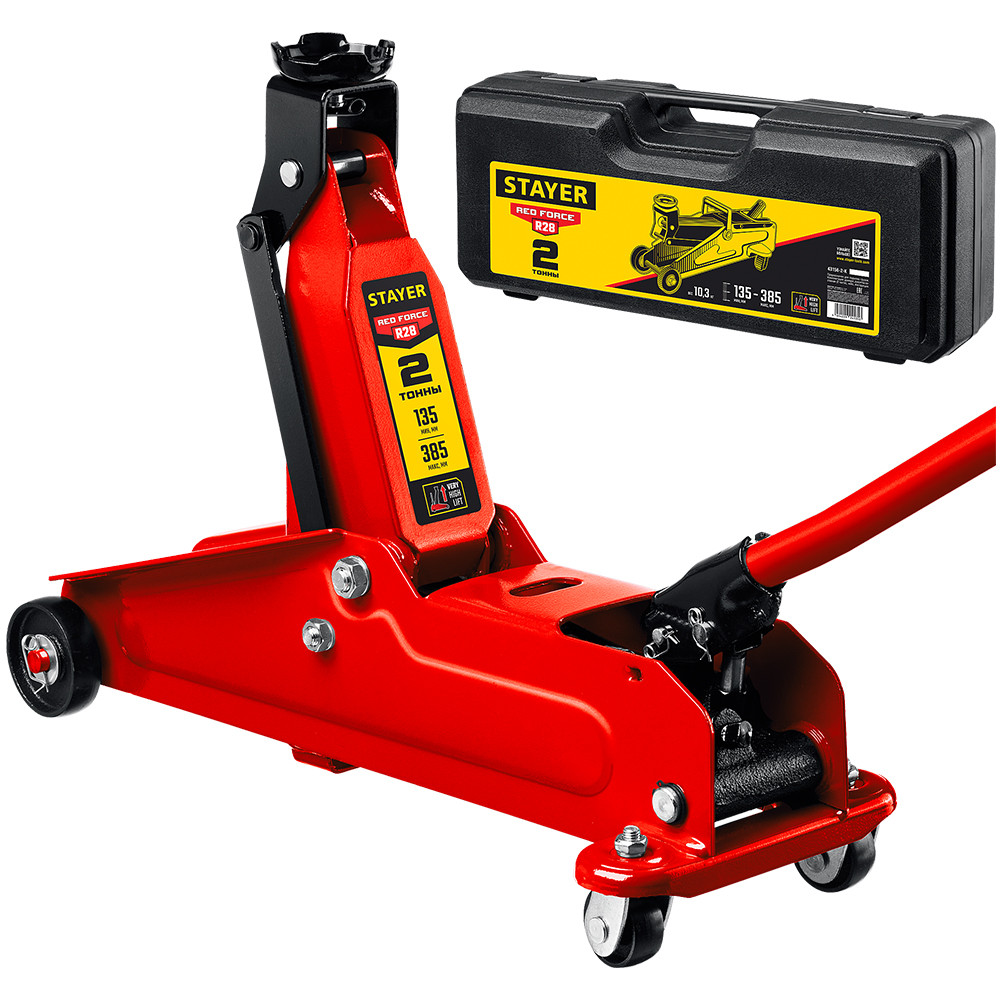 - Домкрат подкатной Stayer Professional R-28 Red Force 43156-2-K с увеличенным подъемом 2 т