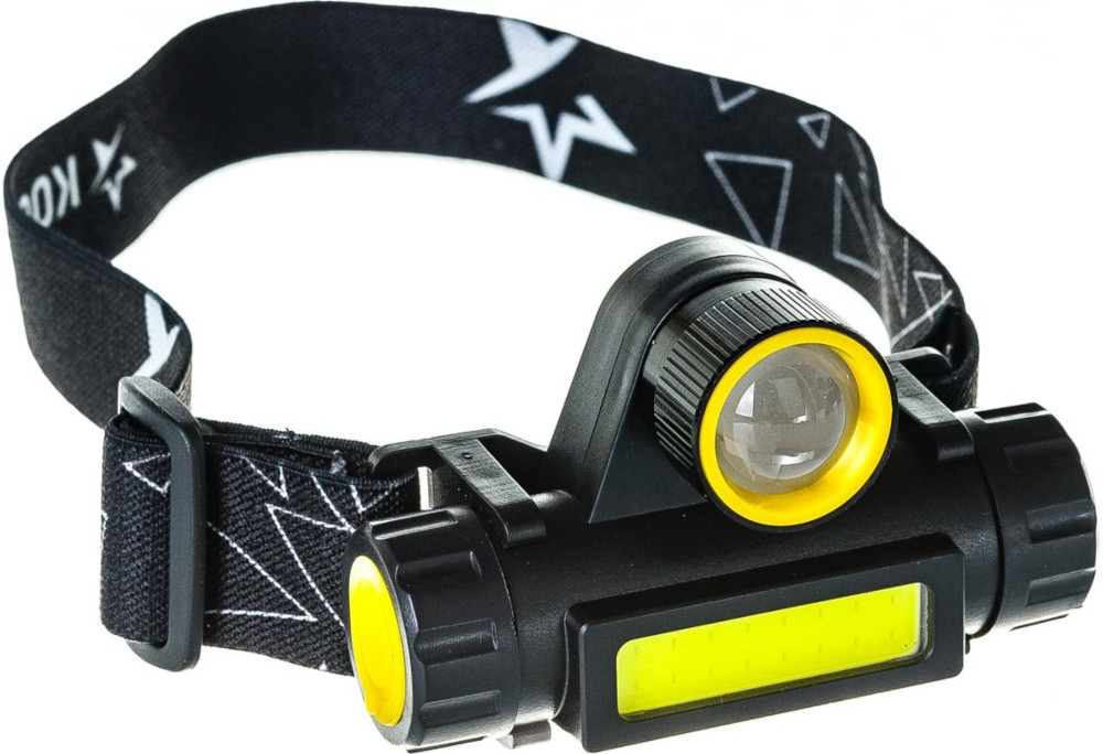 Фонарь аккумуляторный налобный Космос XPE KocH103WLith с зумом. В нижней части светодиод 3W COB рассеянного света - широкий свет для работы вблизи. Сверху - линза с настраиваемым по дальности лучом. 3W XPE светодиод направленного света - осветит дорогу в пути.