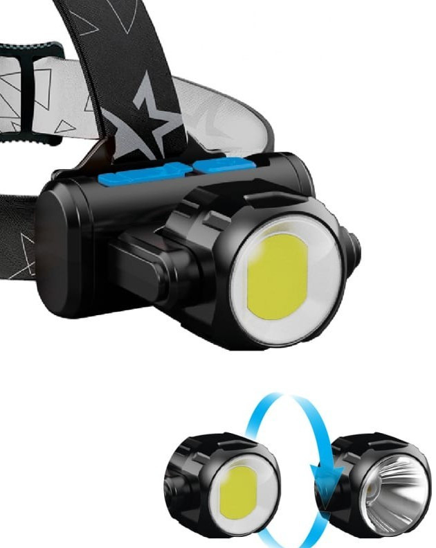 Светодиодный налобный фонарь Космос XPE KocH3WZoo имеет уникальную конструкцию с поворотной головкой что позволяет использовать свет под любым углом. Сделав оборот на 180 градусов - меняется и сам источник света. Источник света - 3Вт XPE LED (луч) + 5Вт COB LED (рассеяный ближний свет). Заряжается от Micro USB (провод в комплекте).
