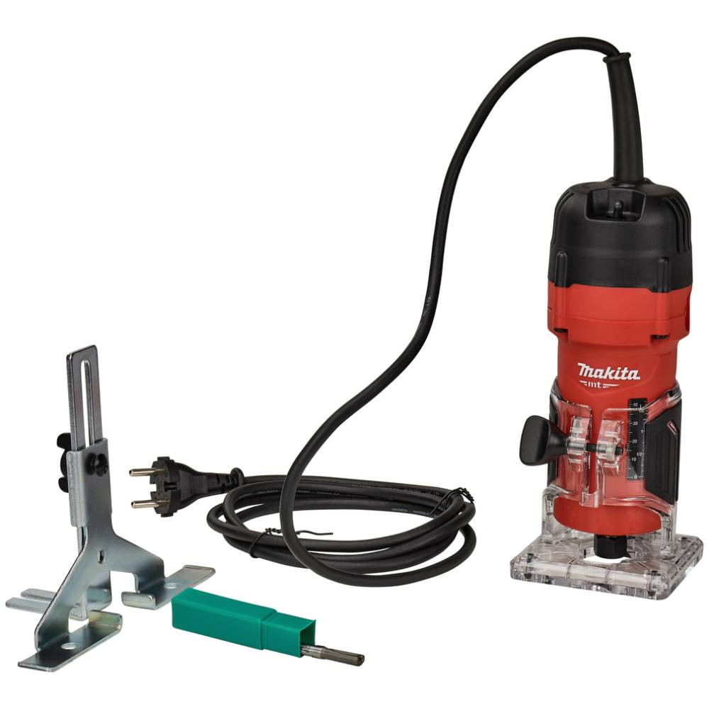 Фрезер кромочный Makita M3702 530Вт 35000об\мин - используется для фрезеровки канавок и снятия фасок. Мощности в 530 Вт достаточно для большинства операций. Плавный пуск делает начало работы более комфортным. Прозрачное основание гарантирует хороший обзор обрабатываемой поверхности. Защита от случайного перезапуска не дает фрезеру с включенной клавишей снова включиться после отключения питания в сети.