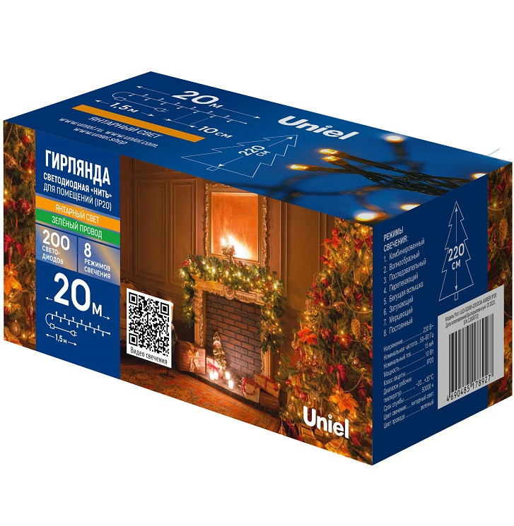 - Гирлянда светодиодная Uniel UL-00010894 ULD-S2000-200/DGA IP20 Amber 20 м
