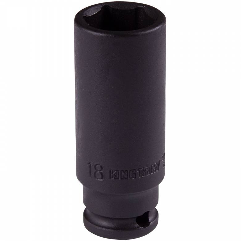 Головка торцевая ударная глубокая King Tony 343518M шестигранная 3/8 дюйма 18 мм - предназначена для монтажно-демонтажных работ с применением ударных гайковертов и других приводов 3/8" DR. Используется при ремонте и обслуживании автомобилей и иной техники, в промышленности, на производствах и т.д.