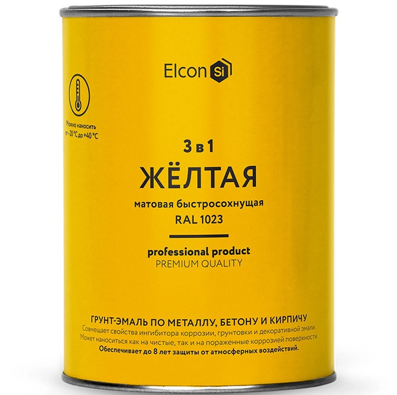 - Грунт-эмаль по ржавчине Elcon 3 в 1 матовая Ral 1023 жёлтая 0,8 кг
