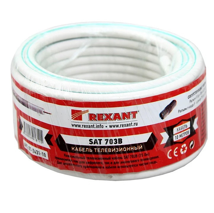 - Кабель коаксиальный Rexant Indoor 01-2431-10 SAT 703B 75Ом Cu/Al/Cu белый 10 м