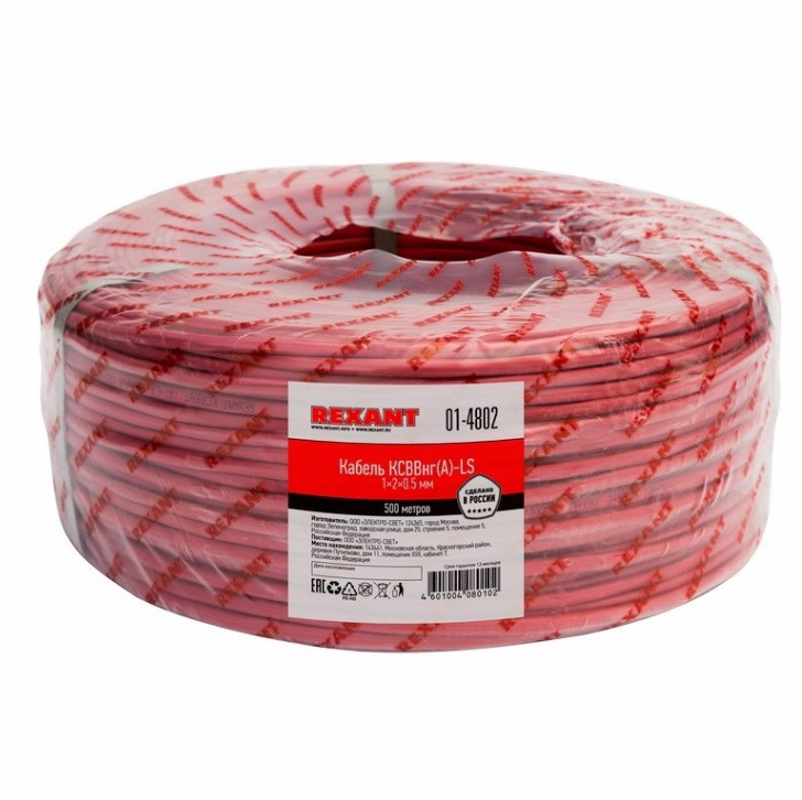 - Кабель сигнальный Rexant 01-4802 КСВВ нг(А)-LS 1х2х0,5 мм 500 м