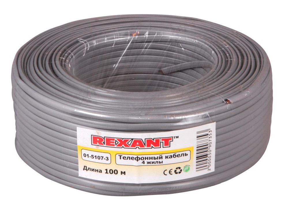 - Кабель телефонный ШТЛП-4 CCA 4 жилы серый бухта 100 м Rexant