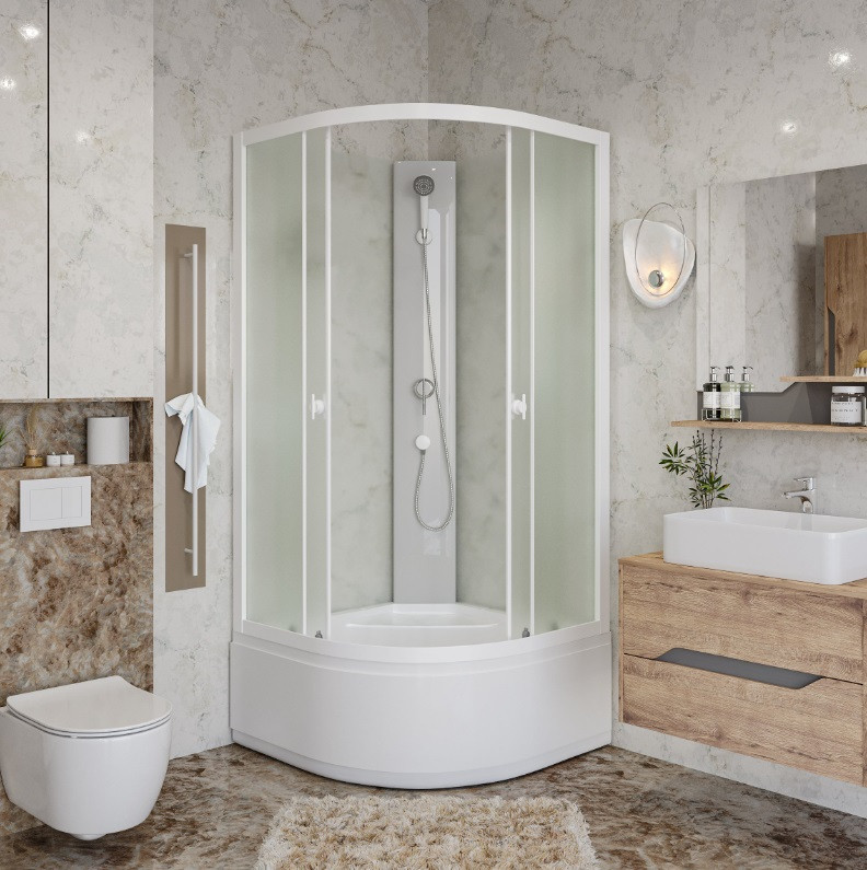 Материал поддона ?Поддоны делают из различных материалов. Наибольшей популярностью пользуются поддоны из акрила, за счет малого веса и простоты в уходе. Есть поддоны из искусственного камня обладают большим весом и малой шумностью, а также хорошо сохраняют тепло. Также часто в качестве материала используют АБС-пластик, к плюсам которого можно отнести сравнительно небольшой вес и хорошую износостойкость.