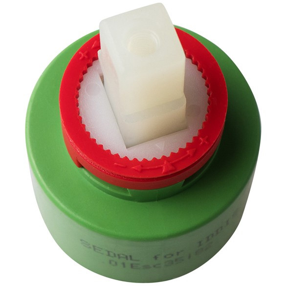 Низкий керамический картридж Iddis стандартного диаметра 35 мм для управления расходом и температурой воды из смесителя. Позволяет осуществить максимально мягкий и точный контроль за счет большого угла поворота 90° и плавной работы механизма.