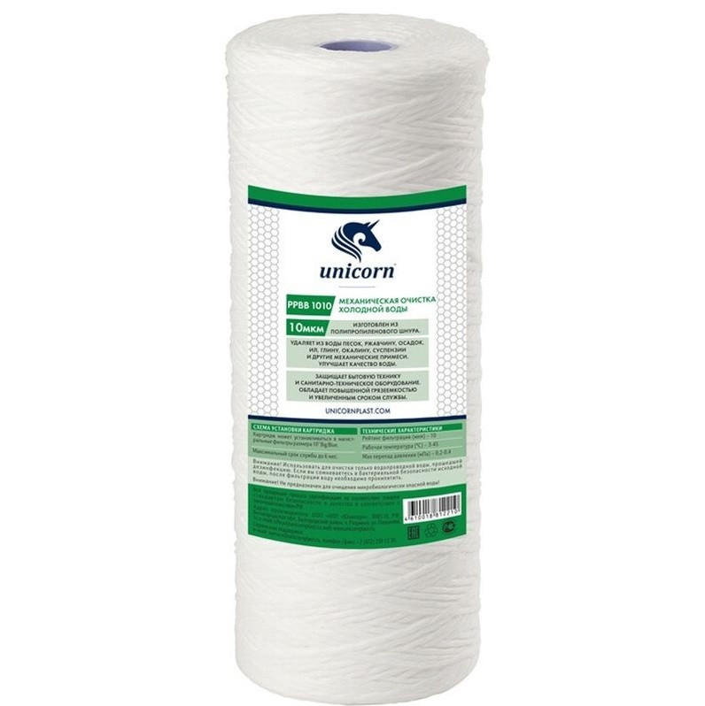 Картридж к фильтру Unicorn Big Blue полипропиленовая нить 20 дюймов 10 мкм изготовлен из высококачественного полипропиленового шнура. Удаляет из воды песок, ржавчину, осадок, ил, глину, окалину, суспензии и другие механические примеси.