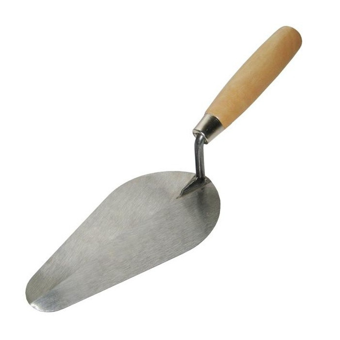 Форма Форма кельмы зависит от вида выполняемых работ. Если используется для штукатурки, то она должна обязательно иметь ровные грани - прямоугольную или трапециевидной формы, но для заброски раствора применяют специальные ковши. Лепестковая форма позволяет удобно обрабатывать труднодоступные поверхности, легко перемешивать и доставать остатки раствора со дна ёмкости. Для выравнивания углов используется угловая кельма.