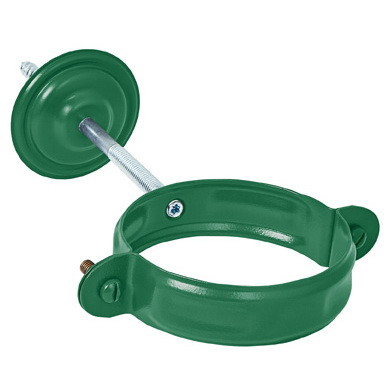 Хомут трубы Aquasystem D125/90 мм RAL 6005 зеленый предназначен для надежного крепления водосточного стояка на фасаде здания. Ограничивает отклонения водосточной трубы во всех направлениях.