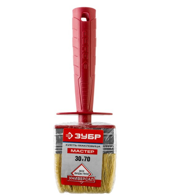Кисть-макловица Зубр Универсал серии Мастер - применяется для размывки потолков, равномерного нанесения грунтовки, побелки, лака, обойного клея и прочих составов на большие по размеры поверхности. Данные кисти очень удобны в и эффективны в работе, а также имеют длительный срок службы. Внешне макловицы походят на щетку с короткой рукояткой. Щетина у данного инструмента может быть синтетической и натуральной. Первая более долговечная и износостойкая, вторая позволяет эффективнее обрабатывать …