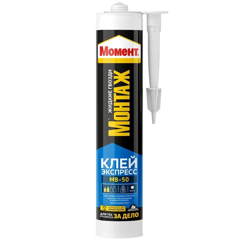 Клей Момент Монтаж Экспресс МВ-50 – это высококачественный универсальный клей, разработанный специально для склеивания широкого спектра конструкций внутри помещения. Надежно склеивает стиропор, дерево, металл, ПВХ, керамика, ДСП, МДФ, гипсокартон, пробку, полистирол, пенопласт, гипс и другие подобные материалы.