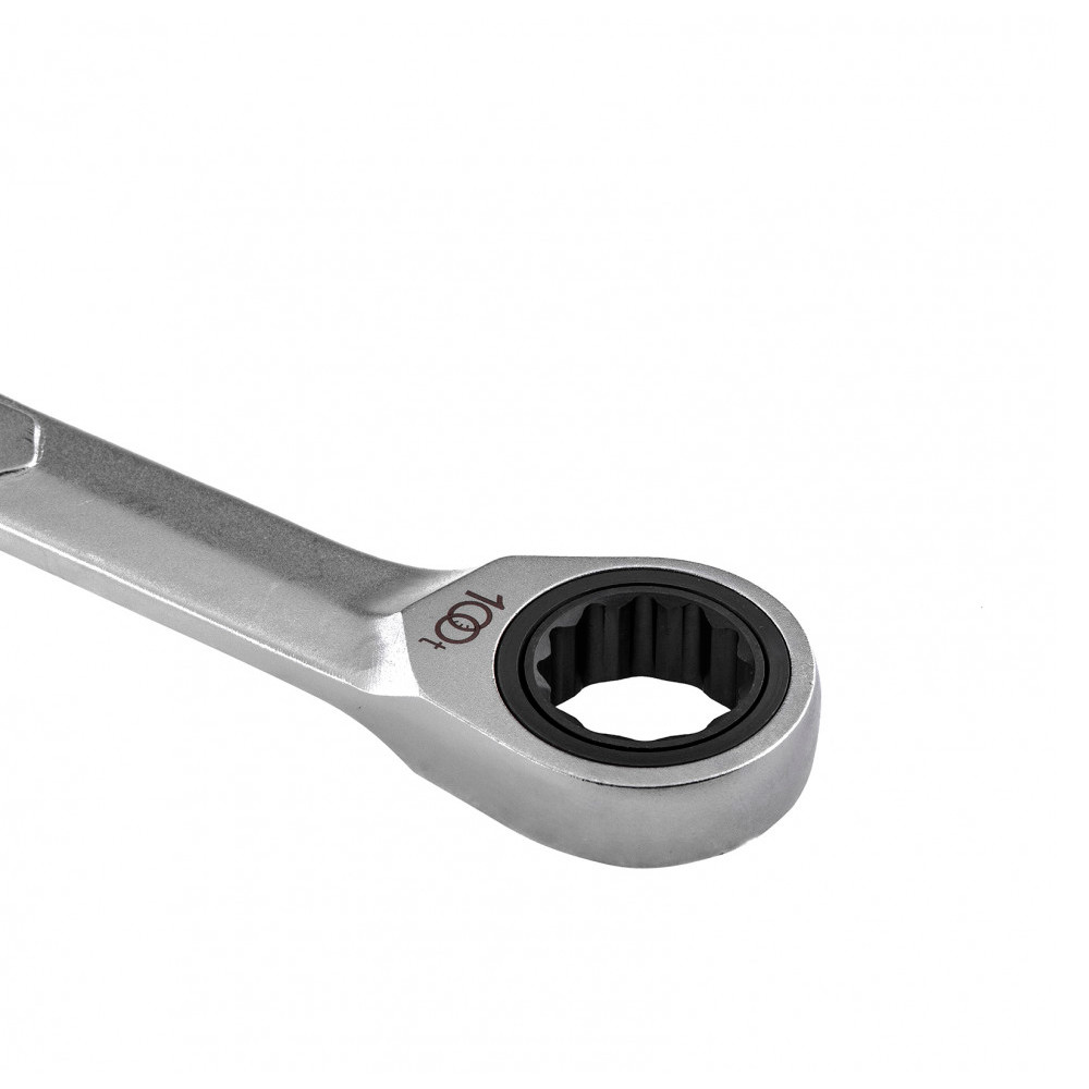 Ключ комбинированный трещоточный Gross из стали CrV, фосфатированный, ГОСТ 16983, предназначен для откручивания и закручивания крепежей, имеющих 6-гранный или 12-гранный профиль головки. Внутренняя поверхность кольцевого зева с 12 гранями позволяет поворачивать ключ всего на 30 градусов, что облегчает работу в стесненных условиях. Ключ используется для слесарно-монтажных работ, будет полезен в строительстве, во время ремонта, а также пригодится дома или в гараже.