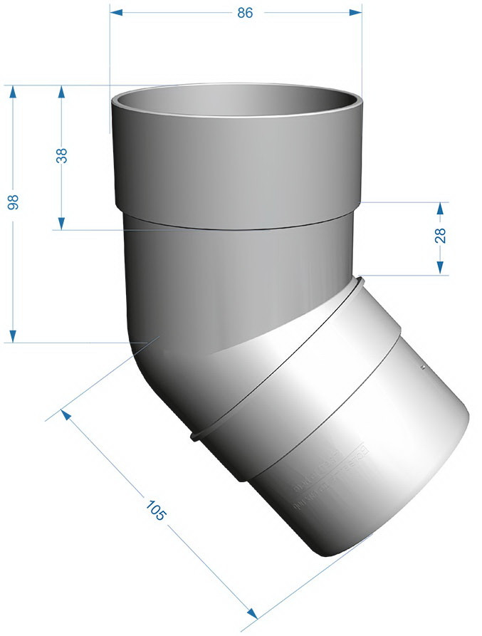 Колено трубы 45 градусов Docke Premium 120/85 Пломбир - элемент водосточной системы, предназначенный для обеспечения перехода от воронки к трубе. Применяется также для обхода архитектурных элементов фасада.