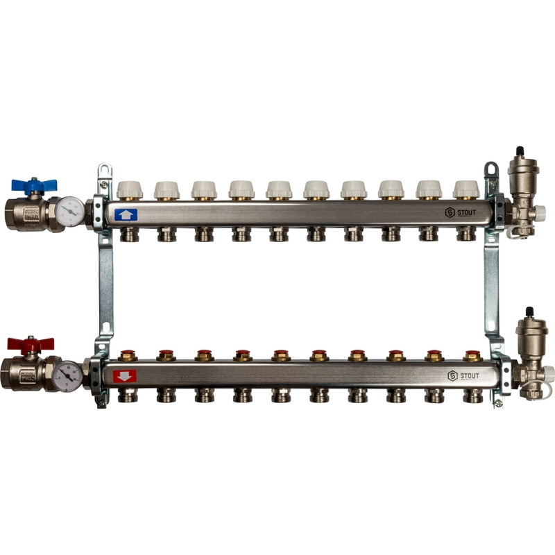 - Коллектор распределительный Stout SMS 0912 000010 на 10 контуров в сборе без расходомеров