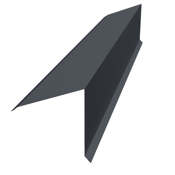 Конек односкатной кровли Grand Line Satin Matt TX Ral 7024 180х160 мм резка обязательный доборный элемент качественно собранной односкатной кровли, располагаемый на верхнюю точку крыши с угловым обхватом с одной стороны кровельного покрытия и с другой – торца, фронтона крыши. Доборная планка применима ко всем покрытиям кровли: металл, полимер, профилированная, плоская.