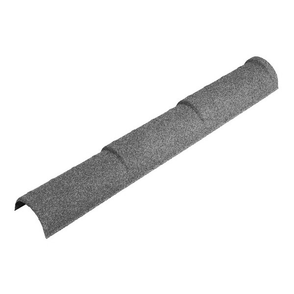 Конек полукруглый тройной Metrotile серый - доборный элемент, который применяется для скатных кровель. Является важной составляющей крыши Metrotile. Позволяет красиво оформить верхнюю часть кровли и придать конструкции эстетически завершённый вид. Вместе с этим он обеспечивает циркуляцию воздуха в подкрышном пространстве и принимает на себя основную нагрузку от неблагоприятных внешних факторов.