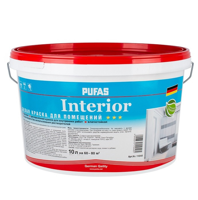 - Краска интерьерная Pufas Interior D морозостойкая белая 10 л/14,4 кг