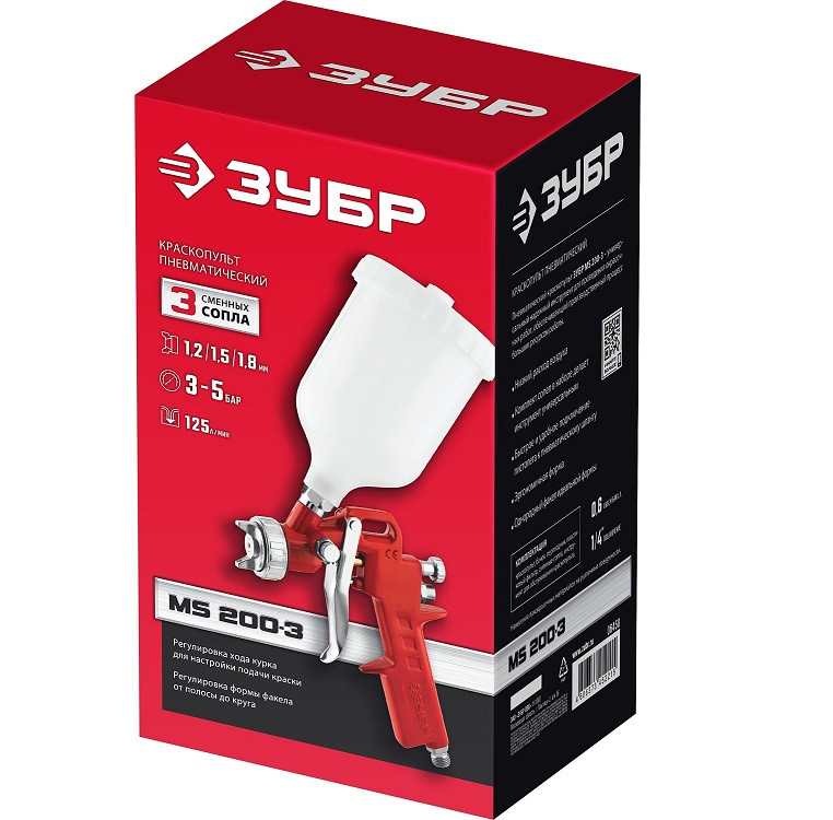 Краскопульт пневматический Зубр MS 200-3 - универсальный надежный инструмент для проведения окрасочных работ, обеспечивающий производственный процесс большим ресурсом работы.