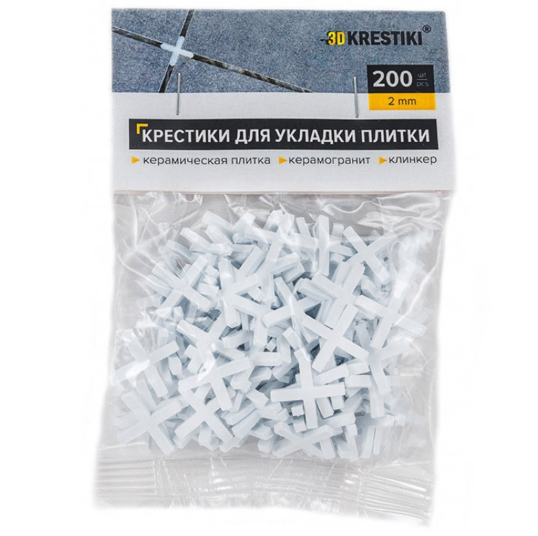 Крестики для плитки 3D Krestiki 2 мм 200 шт самый экономичный и простой способ облегчить и ускорить облицовку пола и стен. Крестики удерживают плитку от сползания с вертикальных поверхностей и обеспечивают одинаковую толщину межплиточных швов. Работа с ними становится проще и быстрее.