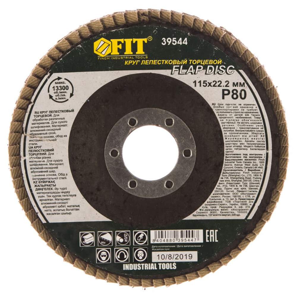 - Круг лепестковый торцевой Fit 39544 Р80 115х22,2 мм