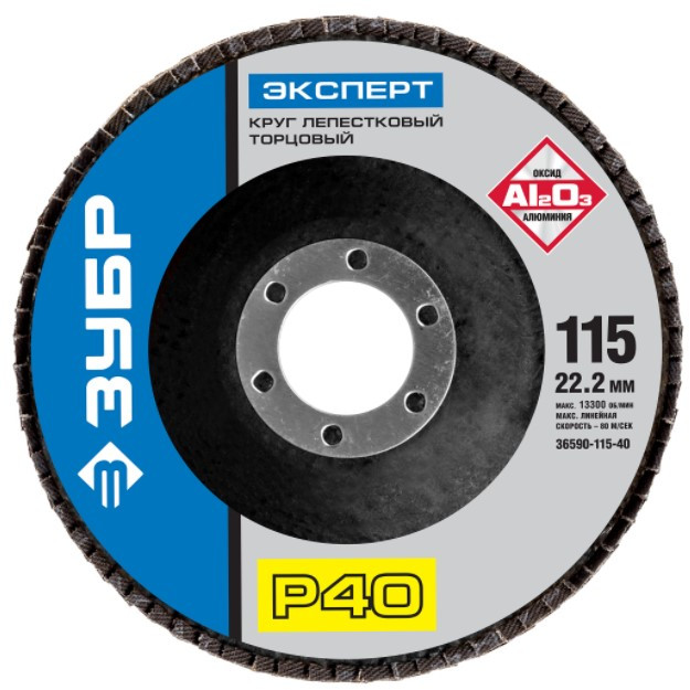 - Круг лепестковый торцевой Зубр КЛТ 1 36590-115-40 115х22,2 мм P40