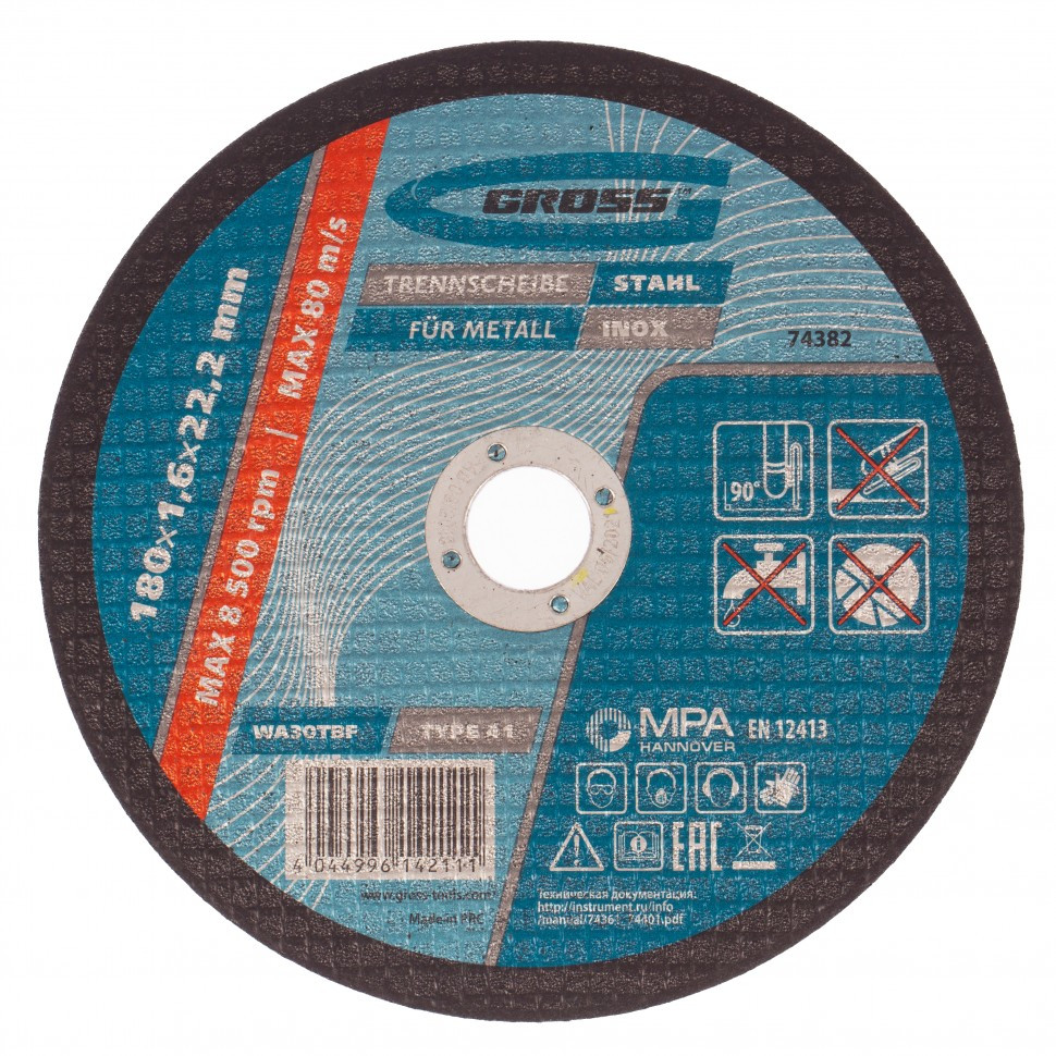 - Круг отрезной по металлу Gross 74382 180х1,6х22,2 мм