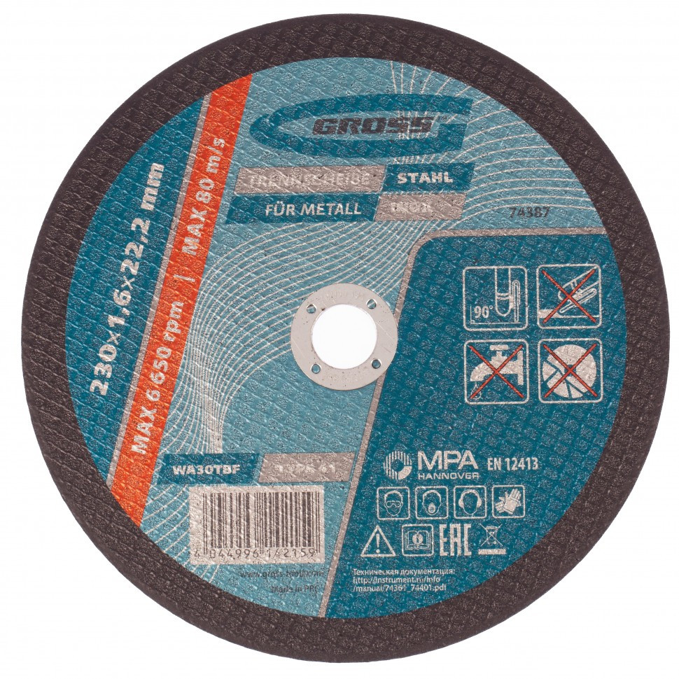 Круг отрезной по металлу Gross 74387 230х1,6х22,2 мм