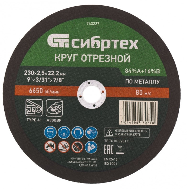 Круг отрезной по металлу Сибртех 743227 230х2,5мм