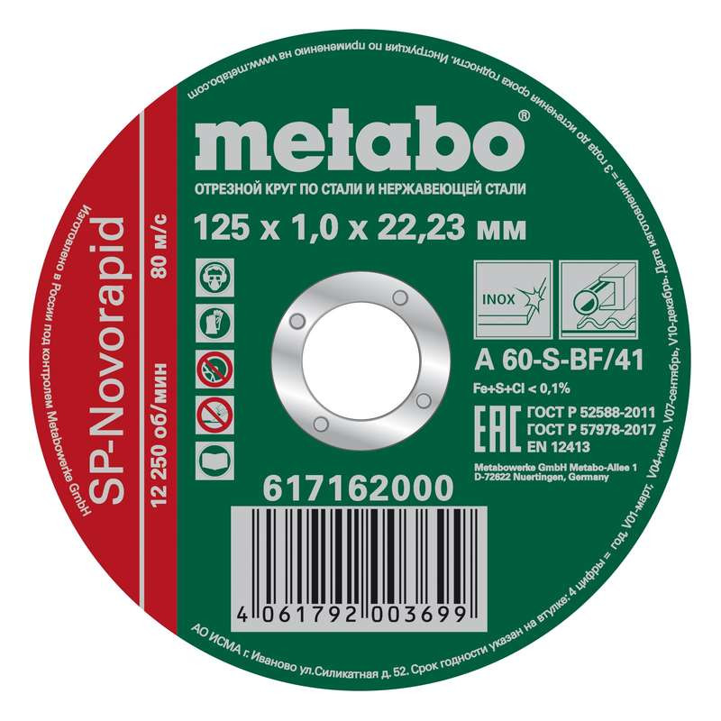 - Круг отрезной SP-Novorapid 125х1.0х22.23мм RU нерж. Metabo 617162000