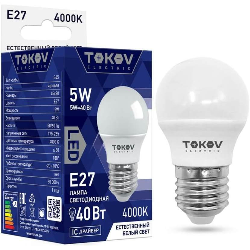 Лампа светодиодная Tokov Electric TKE-G45-E27-5-4K 4000К Е27 176-264В