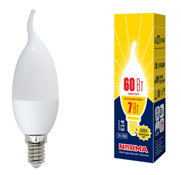 Лампа светодиодная Volpe Norma LED-CW37-7W/NW/E14/FR/NR - это современный источник света с отличными светотехническими характеристиками. В качестве источника светового излучения в лампе применяются светодиоды. Лампа имеет матовую колбу формы "свеча на ветру" и цоколь E14. Расшифровывается маркировка E14 следующим образом: