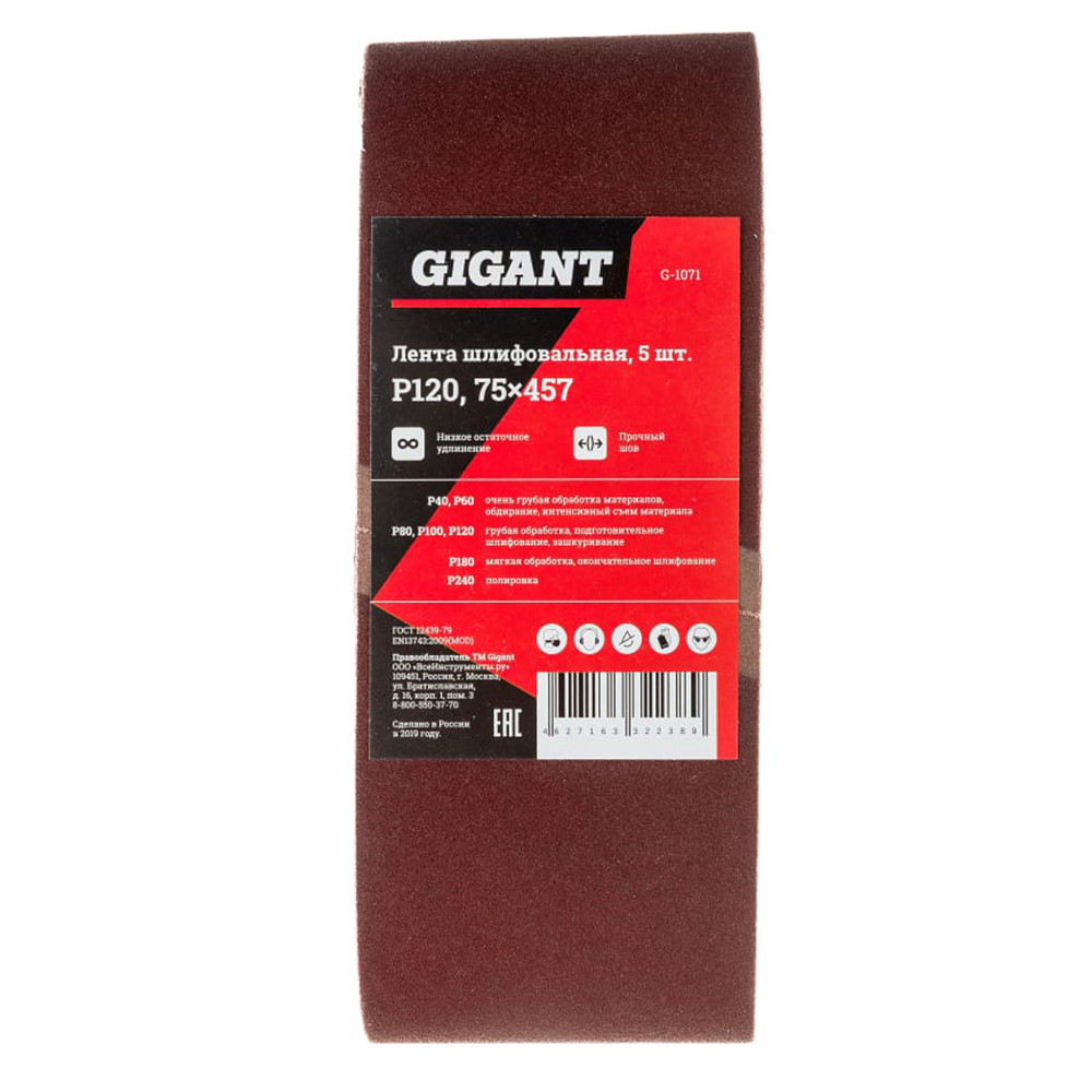- Лента шлифовальная Gigant G-1071 P120 75x457 мм 5 шт